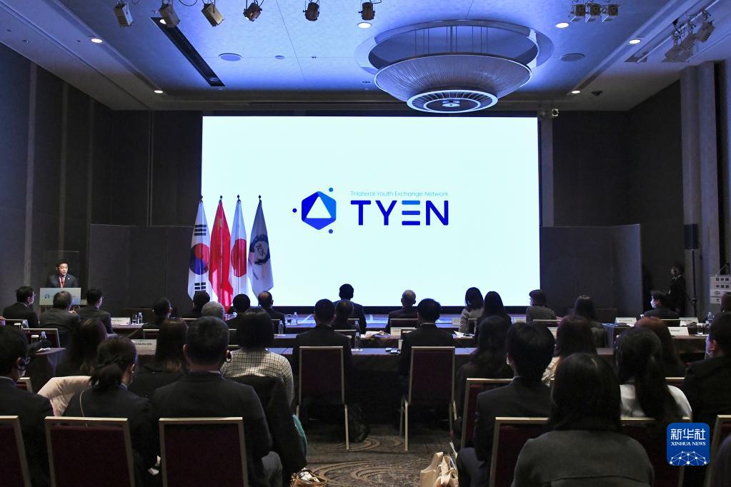 這是2月10日在日本東京“中日韓青年日”活動(dòng)上拍攝的“中日韓青年交流網(wǎng)絡(luò)”啟動(dòng)儀式現(xiàn)場(chǎng)。