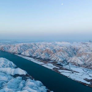 大雪過后,寧夏青銅峽黃河大峽谷銀裝素裹,黃河從峽谷間流過,美如畫卷。新華社發(祁瀛濤攝)