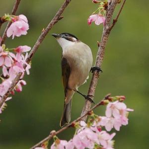 2月10日,在廣西南寧市人民公園,一只小鳥在非洲芙蓉花的枝頭停歇。