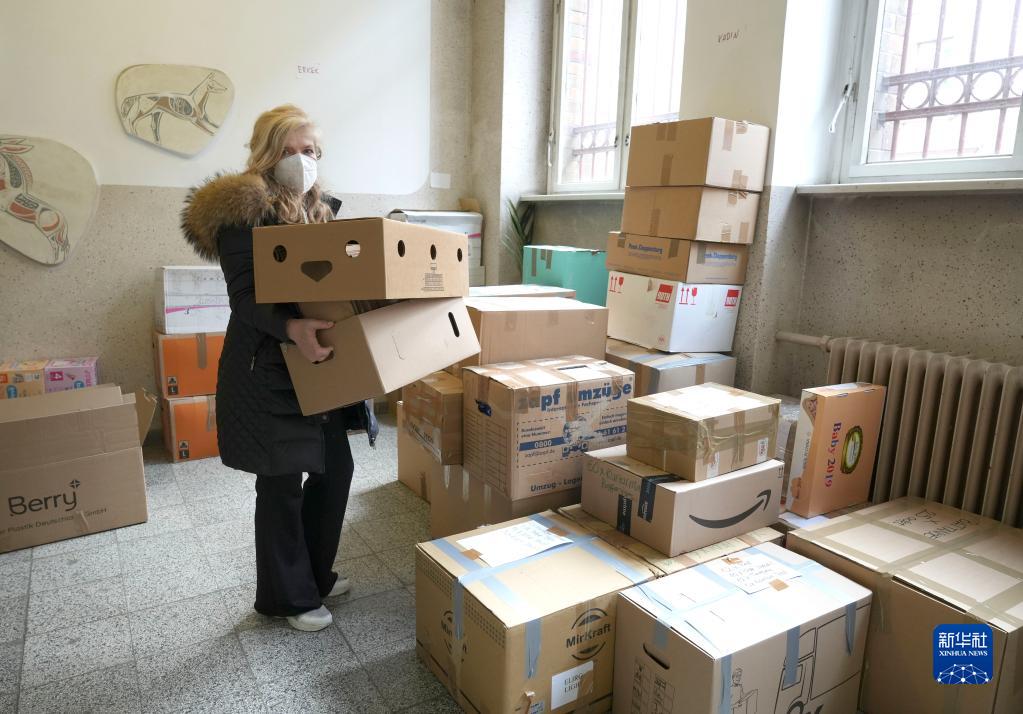 2月10日,在德國(guó)柏林,一名女子整理為土耳其震區(qū)籌措的救援物資。