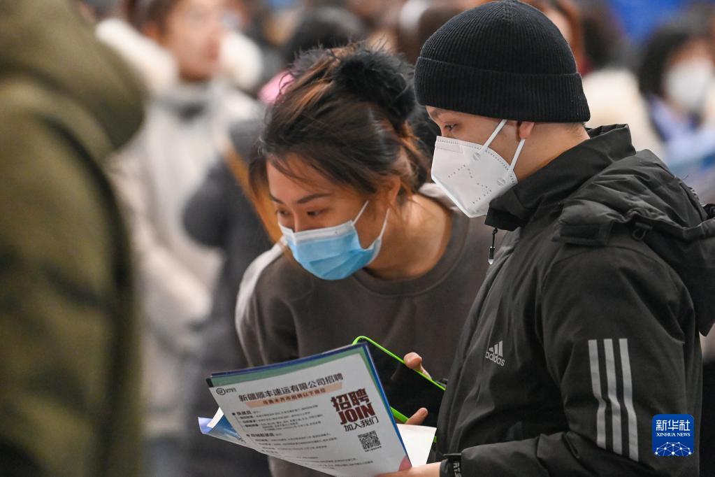 2月11日,在新疆國際會展中心舉行的2023新疆春季人才交流會上,求職者了解崗位情況。