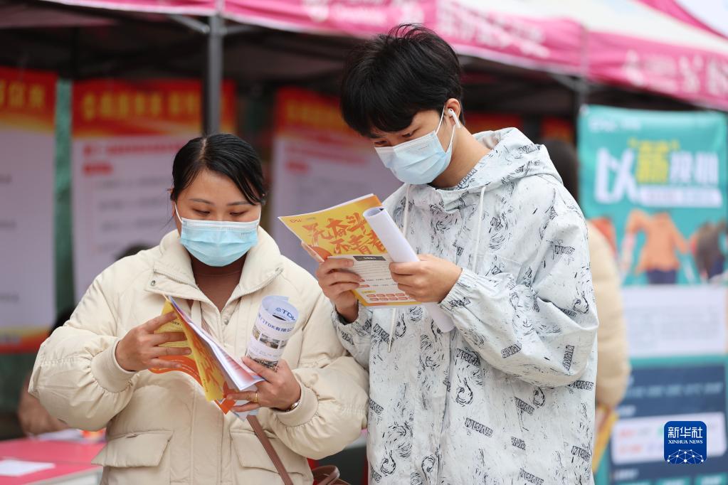 2月11日,求職者在廈門市集美區春風行動暨就業援助月招聘會上了解就業信息。