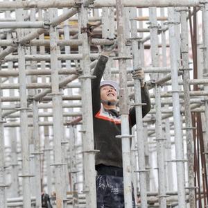 2月11日,工人在浙江省湖州市德清縣康乾街道莫干山智能生態城創新創業產業園項目工地施工。