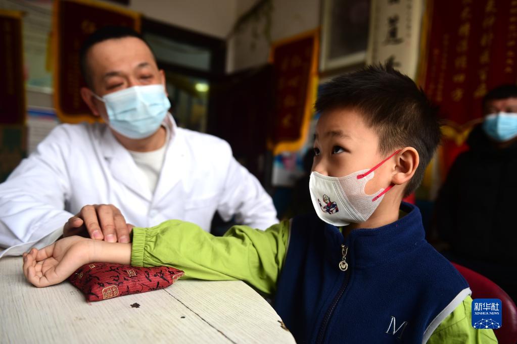 2月11日,滄州市新華區道東街道鞠官屯社區衛生服務站的中醫為患者把脈。