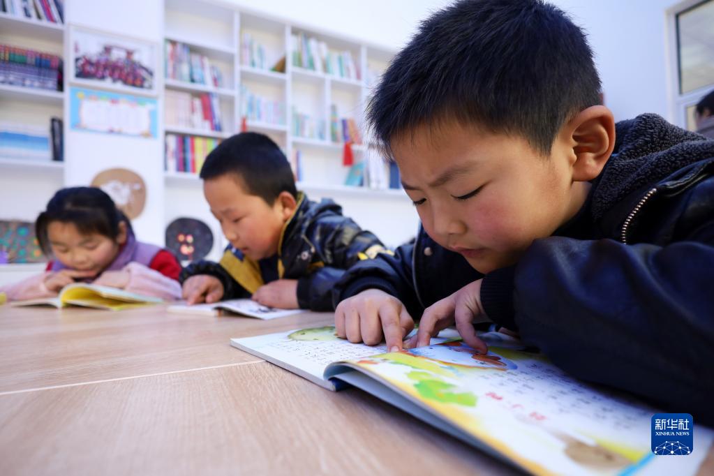 在隴南市徽縣虞關(guān)鄉(xiāng)許壩村“幸福家園”,小朋友在看書(2月11日攝)。