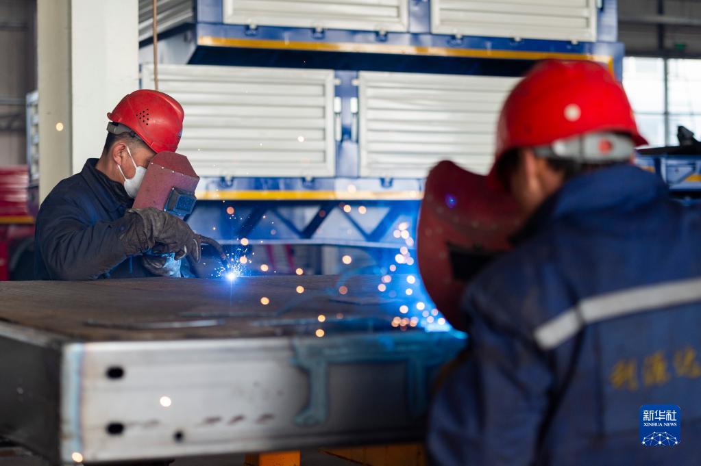 2月11日,在中國(guó)(黑龍江)自由貿(mào)易試驗(yàn)區(qū)黑河片區(qū),黑河市利源達(dá)專用車制造有限公司的工人在生產(chǎn)作業(yè)。