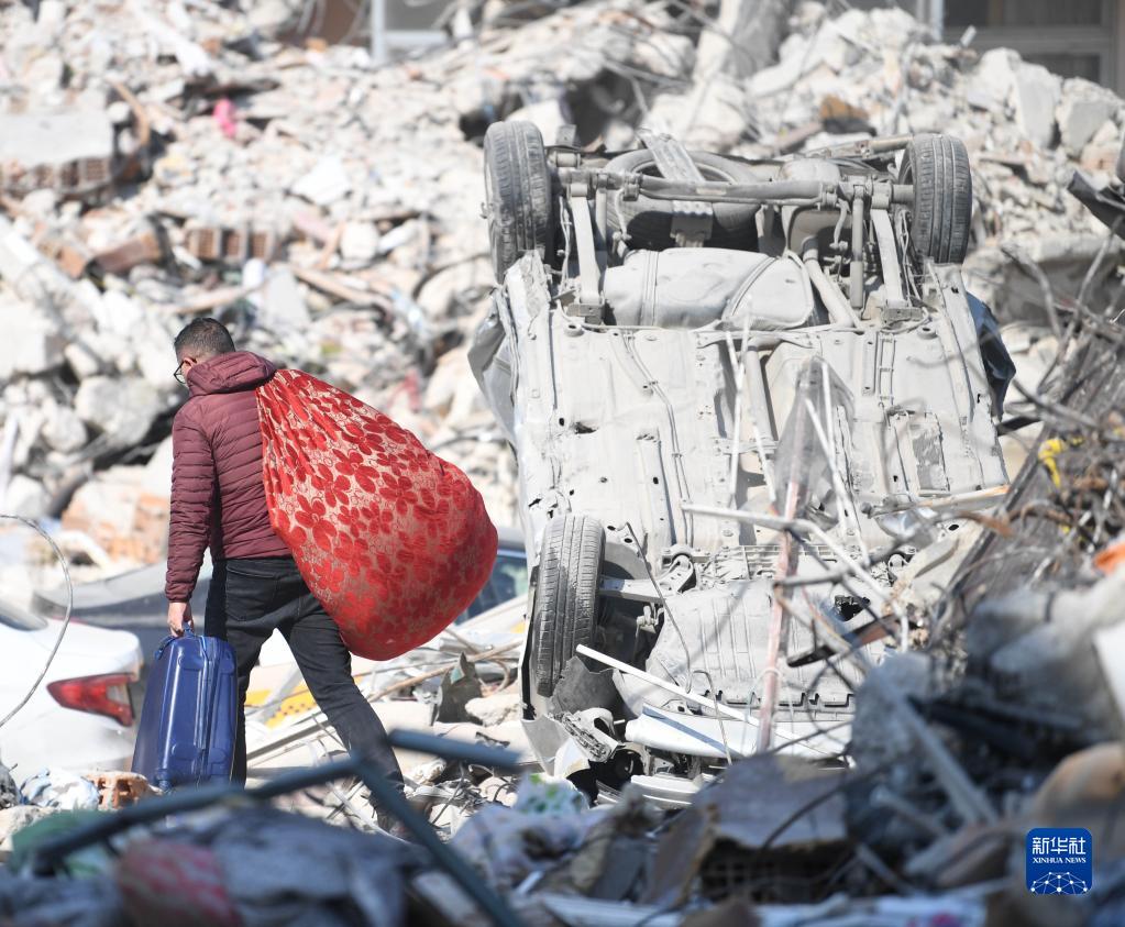 2月11日,一名男子走在土耳其哈塔伊省安塔基亞市的地震廢墟上。
