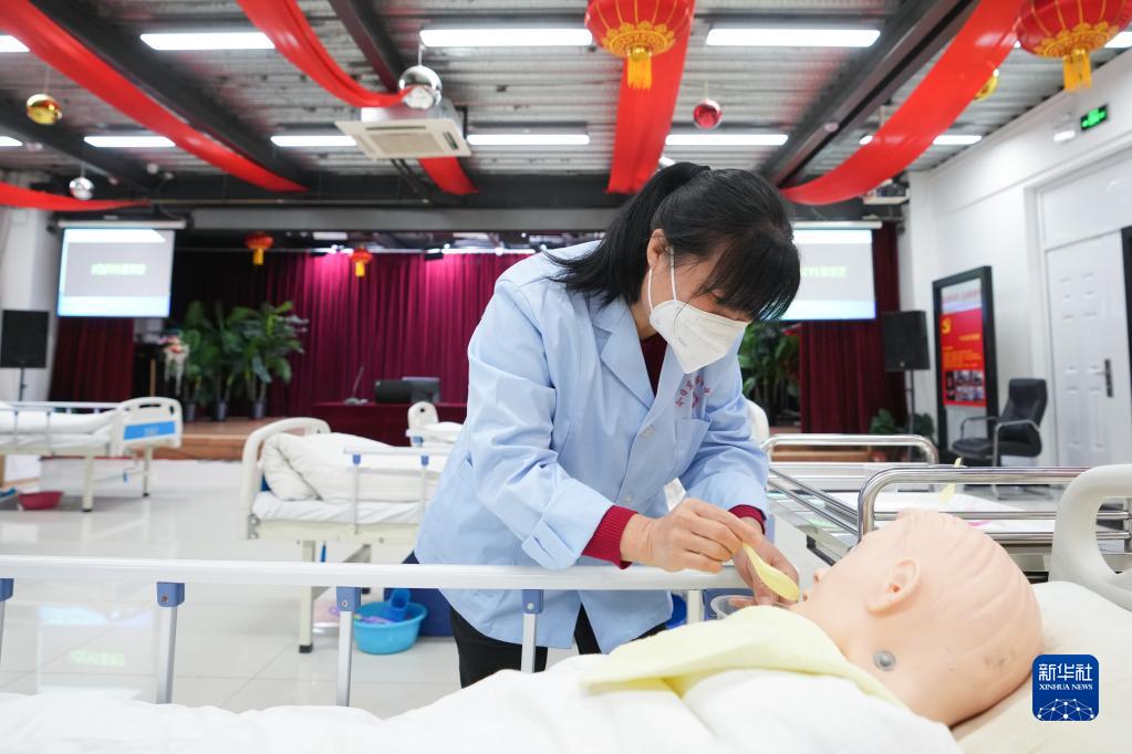 老年人衣物穿脫、飲食照護、清潔照護、急救操作……這些是幾天專項培訓中,薛四四不斷學習和強化練習的內容。