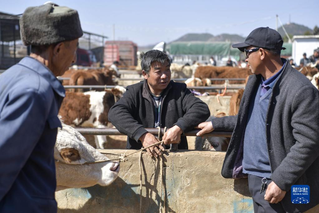 近日,貴州省威寧縣牛市交易迎來旺季。來自云南、四川、廣西及貴州當地的農戶和商販聚集到該縣小海鎮牲畜交易市場,選購和銷售耕牛、能繁母牛等,以便及時投入到春耕備耕生產中。