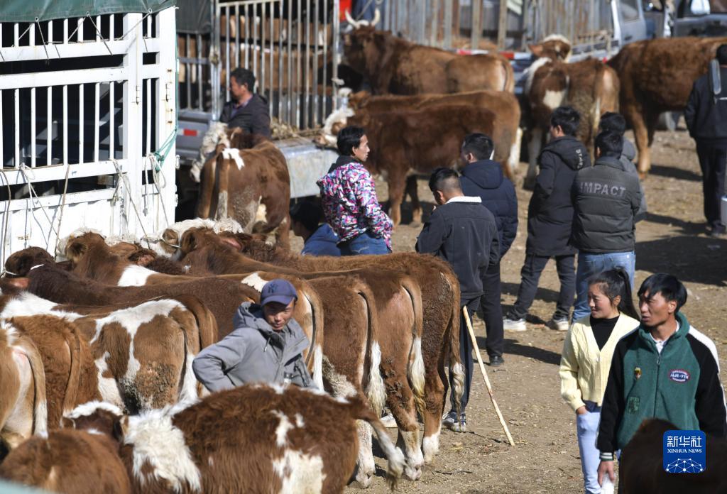 近日,貴州省威寧縣牛市交易迎來旺季。來自云南、四川、廣西及貴州當地的農戶和商販聚集到該縣小海鎮牲畜交易市場,選購和銷售耕牛、能繁母牛等,以便及時投入到春耕備耕生產中。