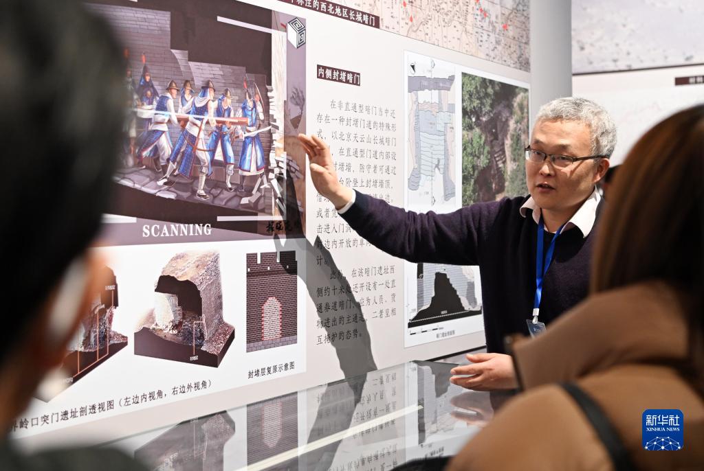 2月12日,天津大學研究團隊成員在展覽上給觀眾講解長城突門。