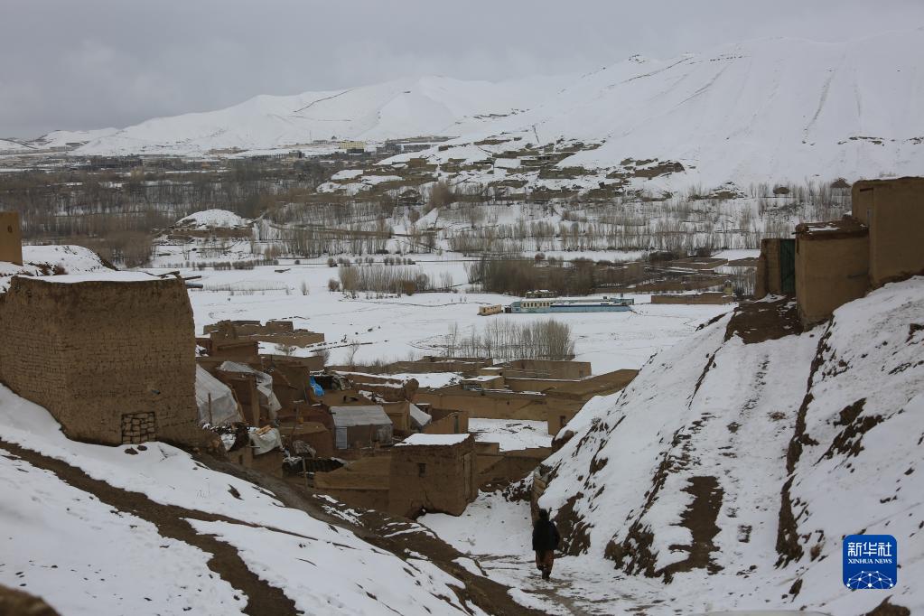 這是2月9日在阿富汗巴米揚(yáng)省拍攝的雪景。