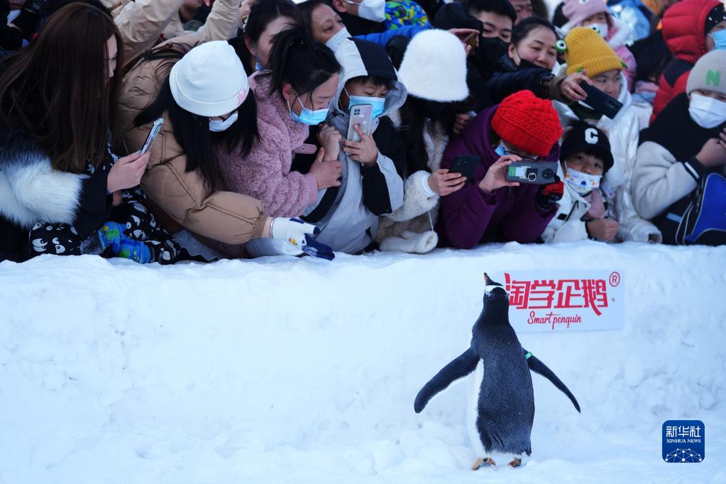 時下,“冰城”哈爾濱市正值冰雪旅游季。哈爾濱極地公園的企鵝每天都會外出“巡游”,吸引許多游客前來觀賞。