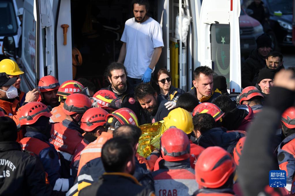 當地時間12日下午,正在土耳其哈塔伊省安塔基亞市實施搜救的中國救援隊營救出一名幸存者。
