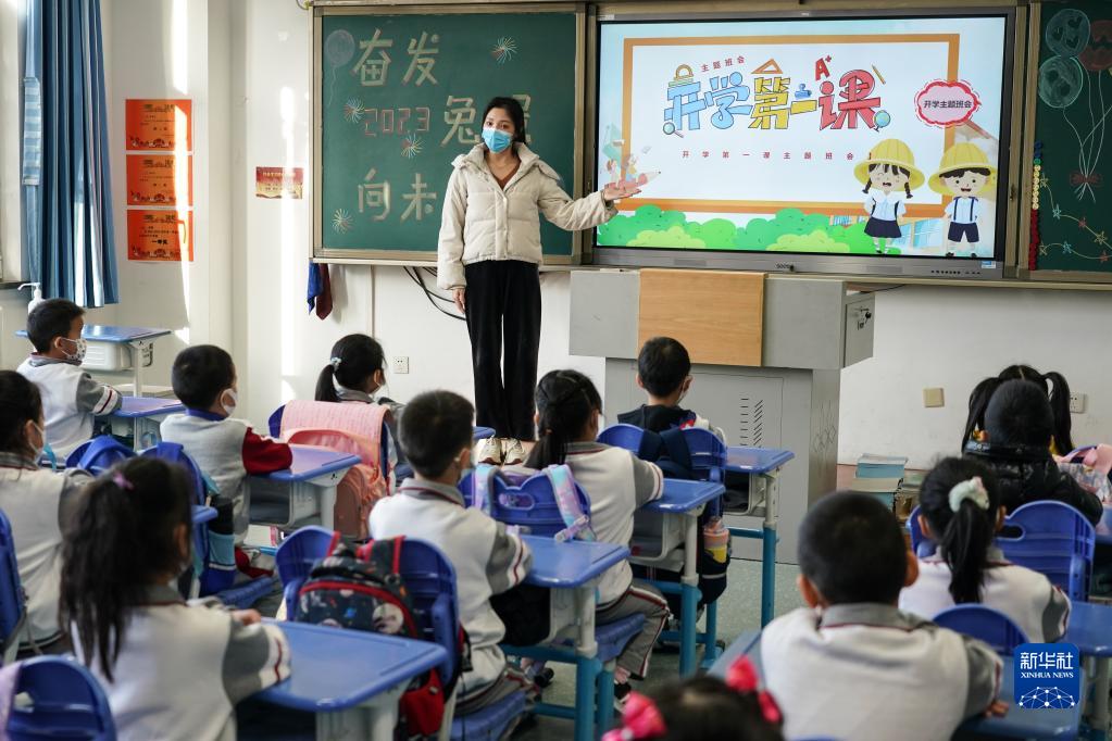 2月13日,在北京小學大興分校亦莊學校,學生們在上開學第一課。
