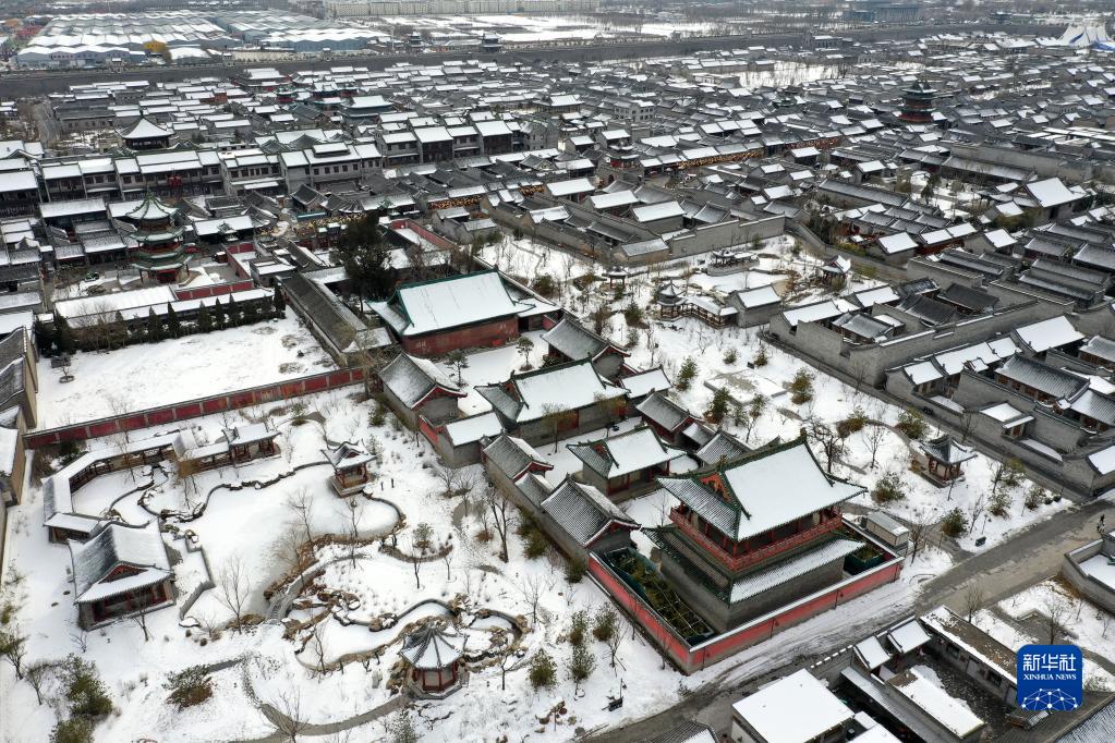 一場降雪過后,位于山西省太原市晉源區(qū)的太原古縣城銀裝素裹,美景如畫。