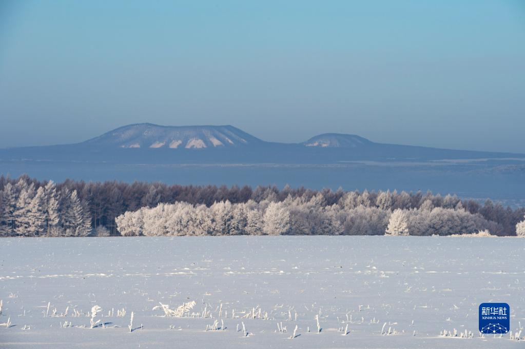 位于黑龍江省黑河市的五大連池風景區火山與霧凇景觀(2月13日攝)。
