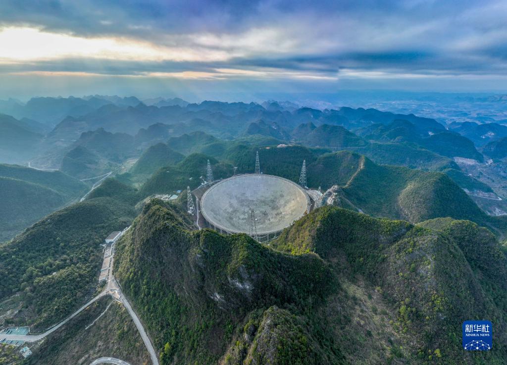 2月13日拍攝的“中國天眼”全景(維護保養期間拍攝,無人機全景照片)。