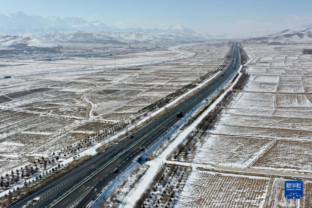 2月14日拍攝的烏鞘嶺及周邊雪景(無人機照片)。