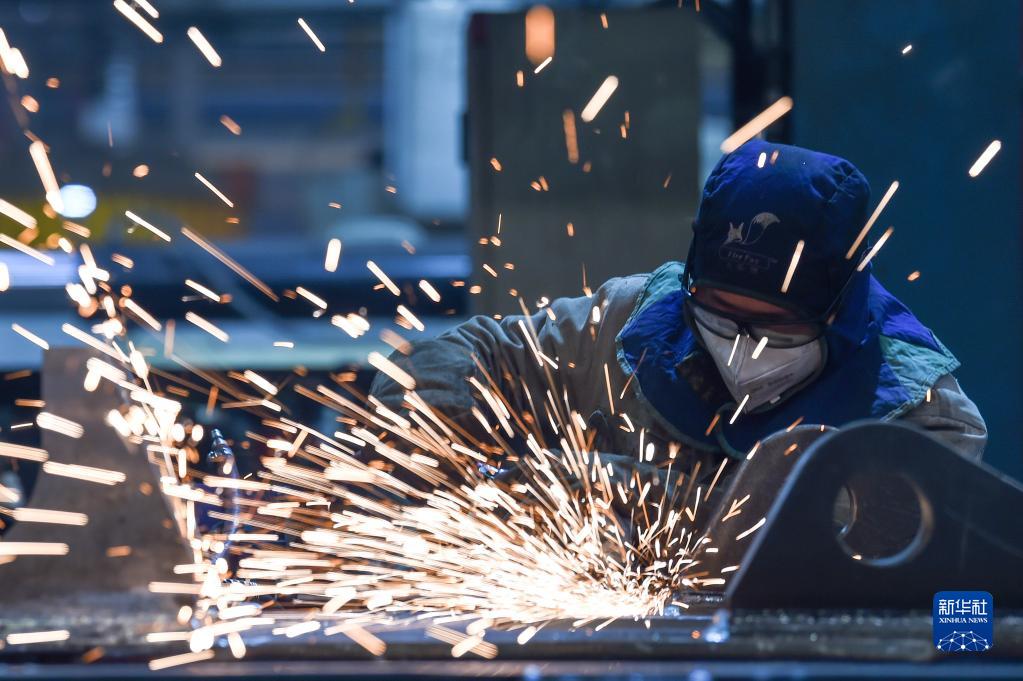 2月14日,工人在位于內蒙古包頭市的內蒙古北方重型汽車股份有限公司生產車間打磨零部件。