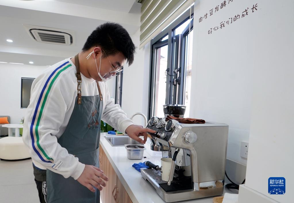 2月15日,黃浦區特殊教育職業學校的學生在制作咖啡。