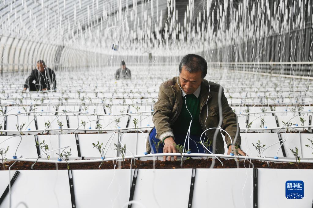 近日,北京市平谷區(qū)峪口鎮(zhèn)的農(nóng)業(yè)中關(guān)村示范園的工作人員搶抓農(nóng)時,進行桃樹剪枝、蔬菜育苗等春耕作業(yè)。