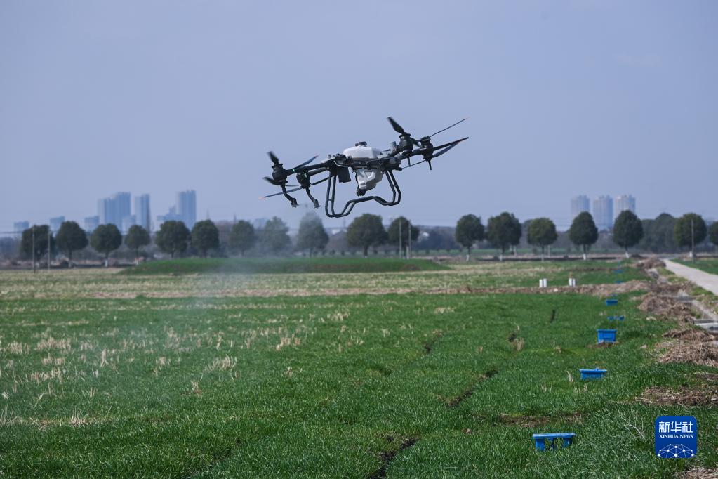 2月15日,在浙江省嘉興市南湖區鳳橋鎮星火村的一個綠色農田建設項目現場,工作人員在操作無人機進行施肥。該項目依托“綠色農田”智慧平臺,對數千畝稻田進行數字化管理,同時還建立稻田退水零直排+水下森林的農業面源污染治理模式,有效降低農田肥水中的氮磷濃度,實現了農業肥藥減量和稻米清潔生產品質提升的協同增效。