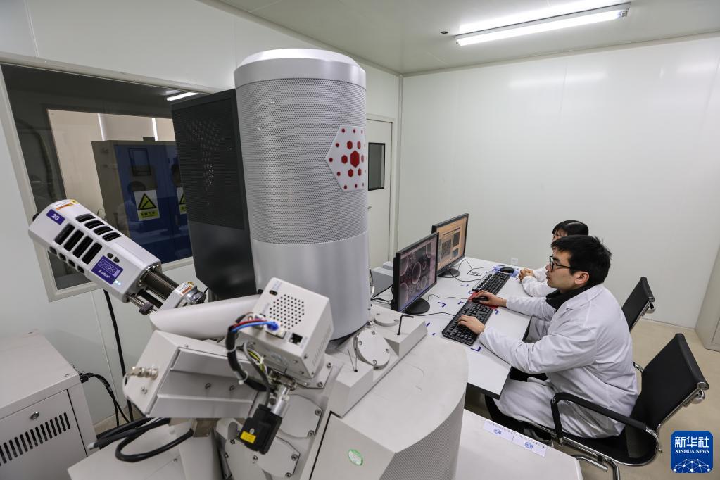 江蘇省先進碳材料分析測試中心的技術人員在掃描電子顯微鏡實驗室做測試(2月14日攝)。