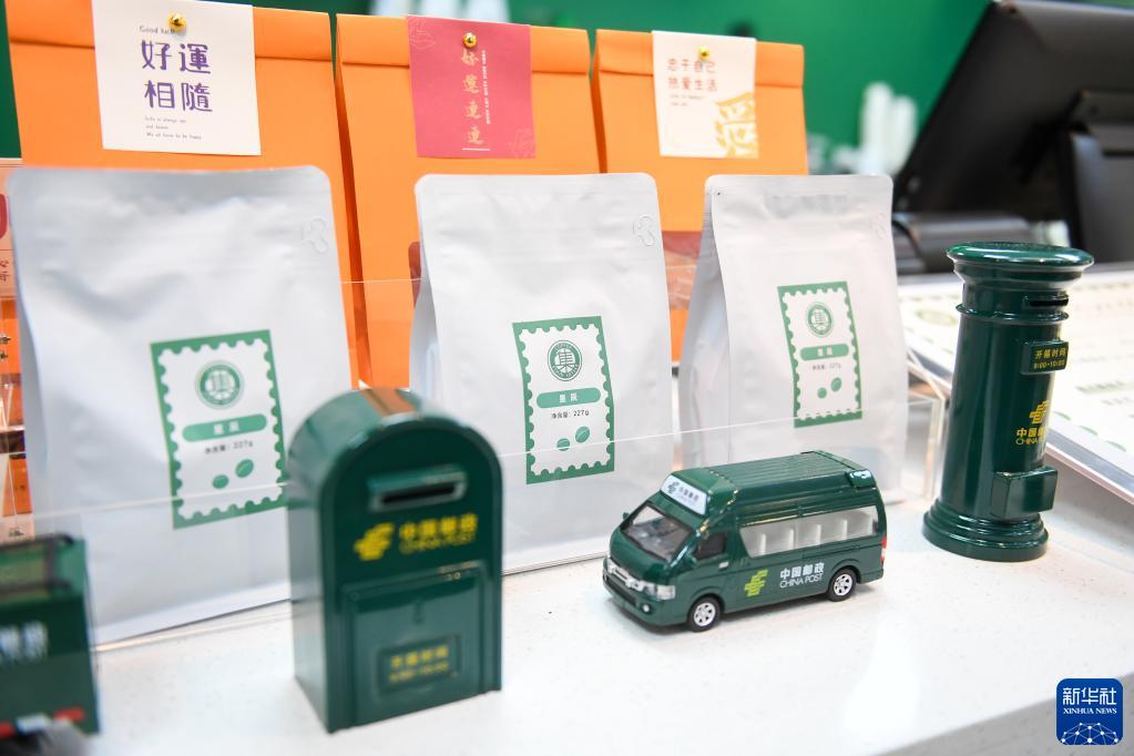 2月15日在深圳咖啡主題郵局拍攝的咖啡豆和文創(chuàng)產(chǎn)品。