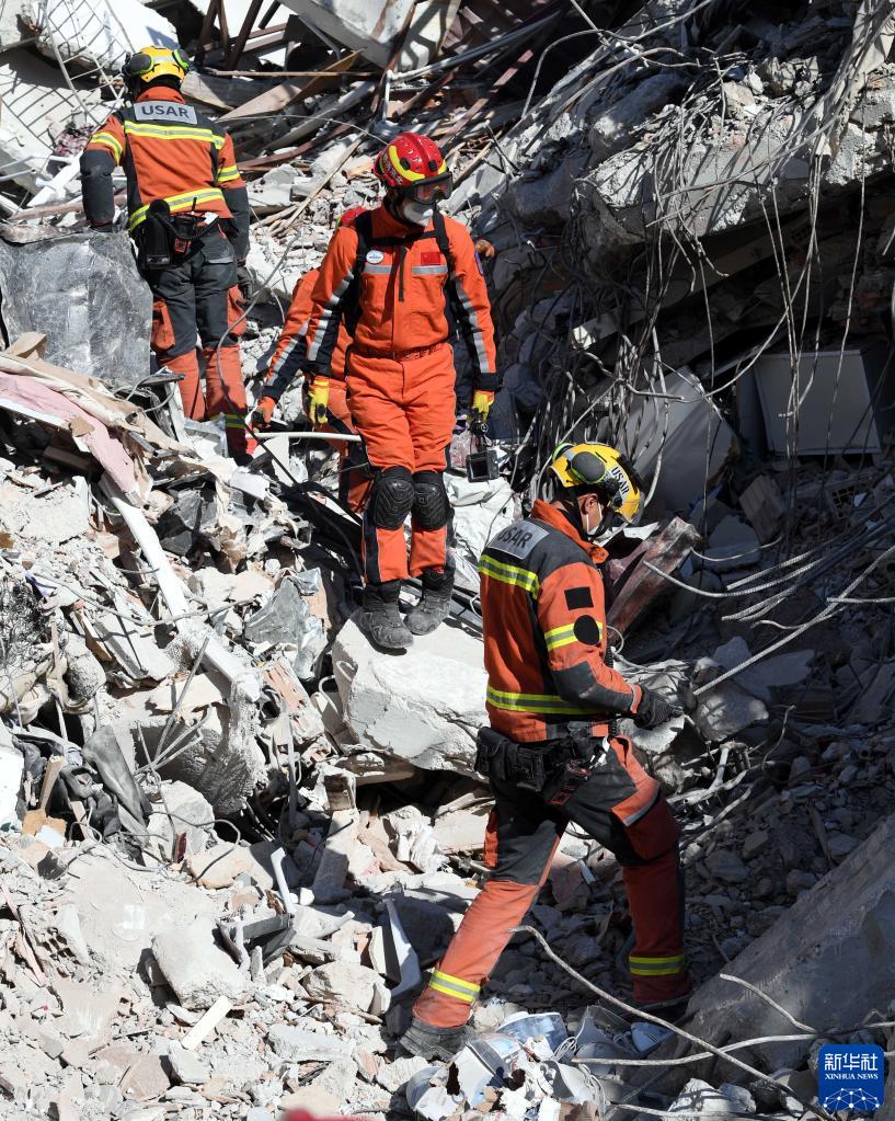 中國救援隊繼續在土耳其地震災區24小時不間斷搜救