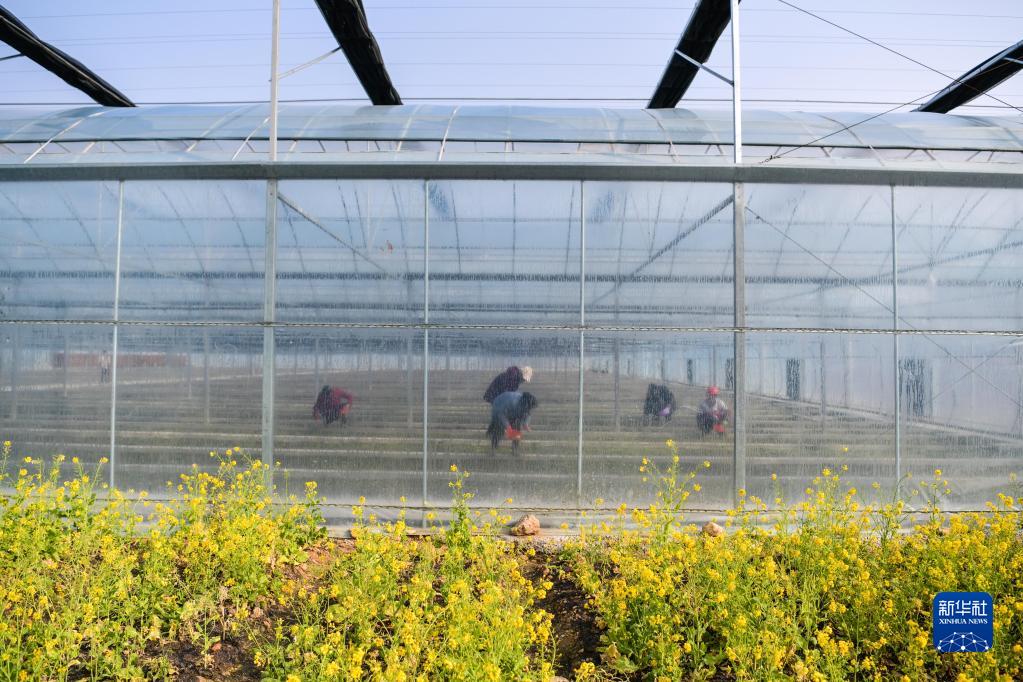 2月15日,工人在貴州省從江縣貫洞鎮(zhèn)淫羊藿育苗基地的溫室大棚里管護淫羊藿苗。