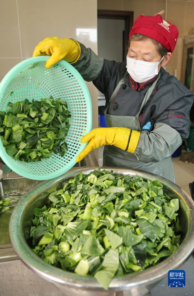 2月15日,鄰里紅餐廳服務員在準備食材。
