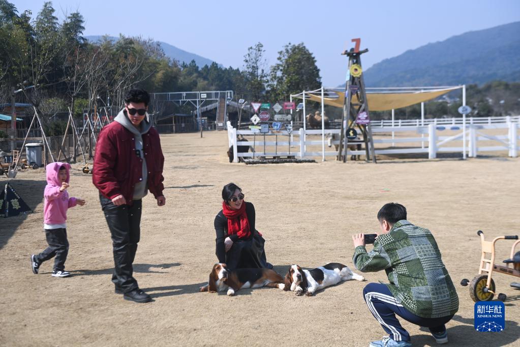 2月16日,游客在道場鄉(xiāng)菰城村的GoFarm趣農(nóng)場內(nèi)與小動物互動玩耍。