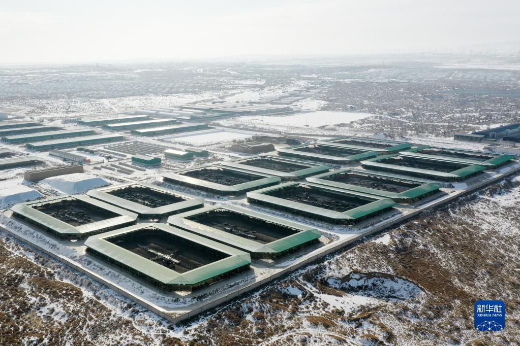 這是2月15日拍攝的古浪縣西靖鎮(zhèn)肉牛養(yǎng)殖基地(無人機(jī)照片)。
