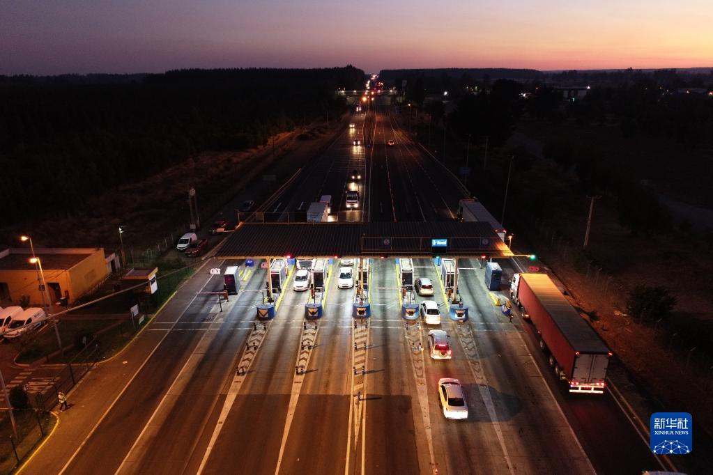 這是2月14日晚拍攝的位于智利比奧比奧大區(qū)的5號公路圣克拉拉主收費站。