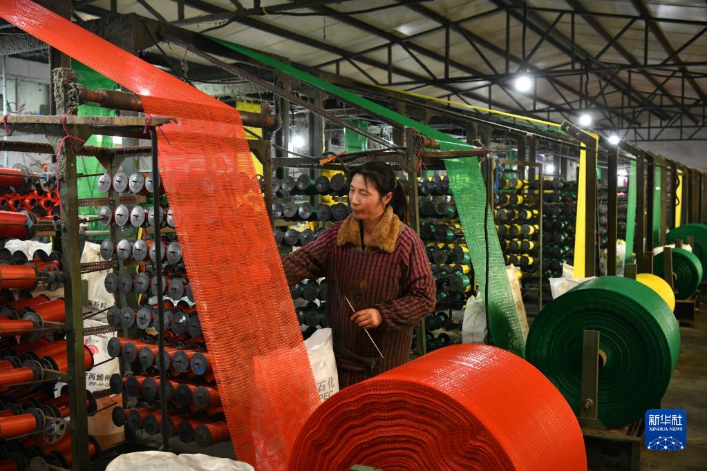 2月16日,地處獻縣泛區的河北省滄州市獻縣小平王鄉元昌樓村村民在村內一家編織袋加工廠內工作。