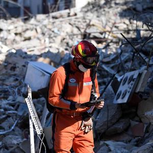 2月9日,中國救援隊隊員在土耳其哈塔伊省安塔基亞市開展救援工作。