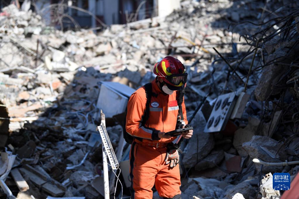 2月11日,中國救援隊隊員在土耳其哈塔伊省安塔基亞市開展救援工作。