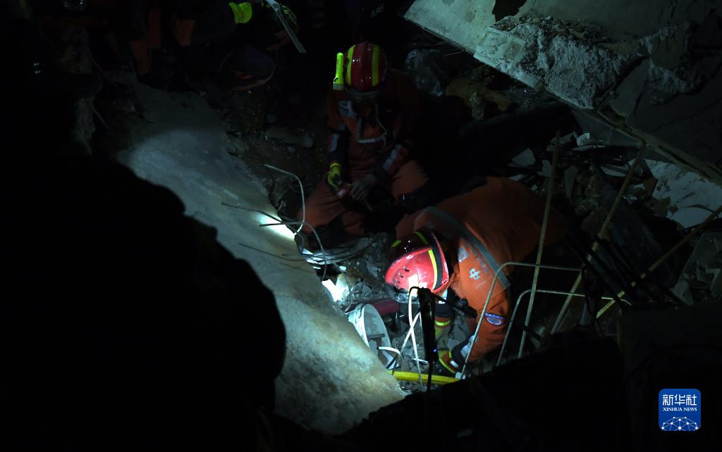 2月9日,中國救援隊隊員在土耳其哈塔伊省安塔基亞市開展救援工作。