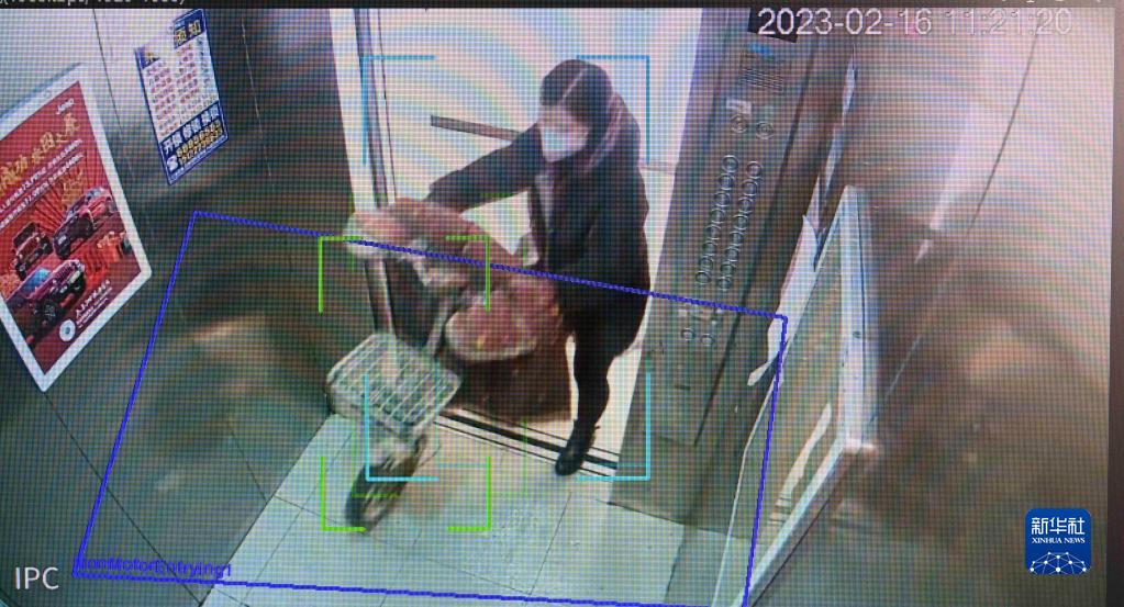2月16日,天津市東麗區張貴莊街道華亭里社區躍麗家園小區的智能梯控系統根據算法識別出進入電梯轎廂的電動車。