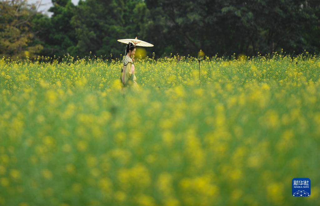 近日,深圳光明區(qū)歡樂田園的油菜花開放,吸引市民踏青賞春。