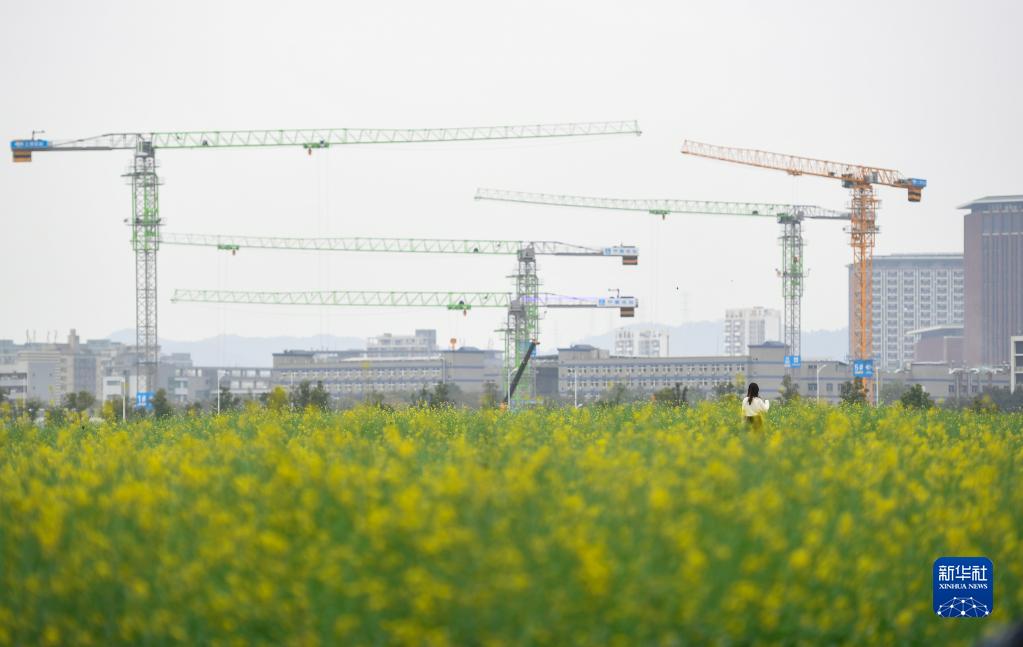 近日,深圳光明區歡樂田園的油菜花開放,吸引市民踏青賞春。