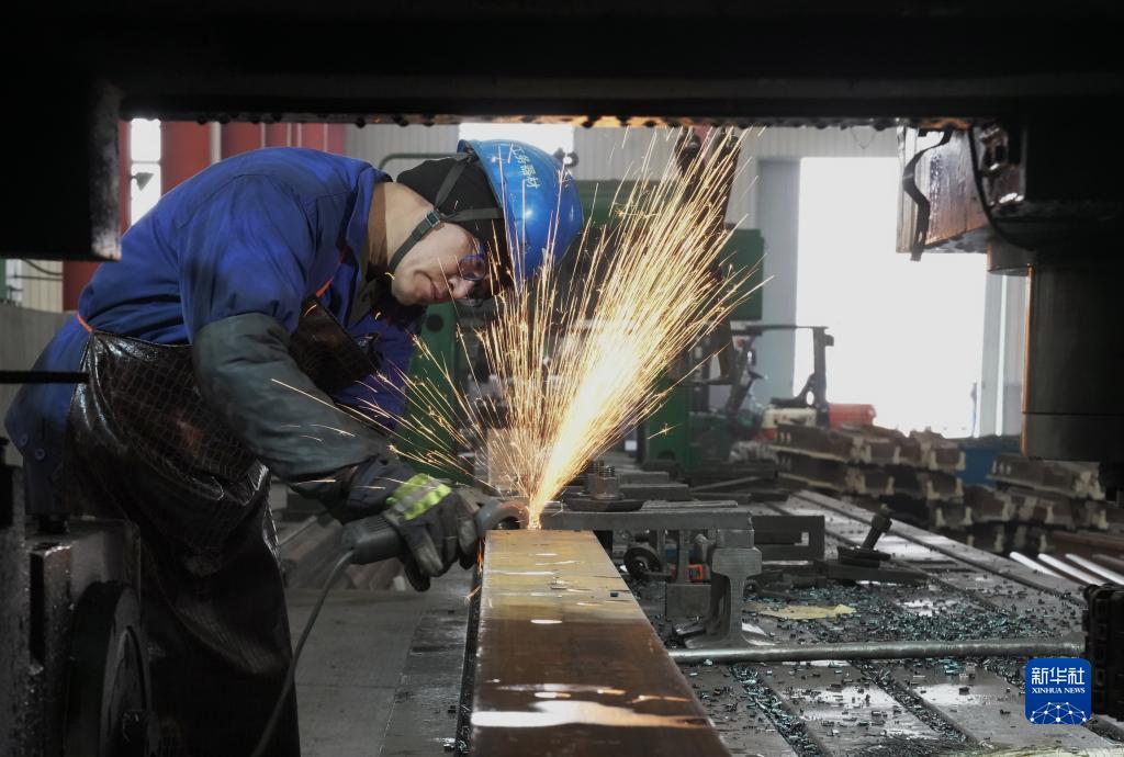 2月16日,工人在秦皇島市一家鐵路道岔生產企業的車間工作。