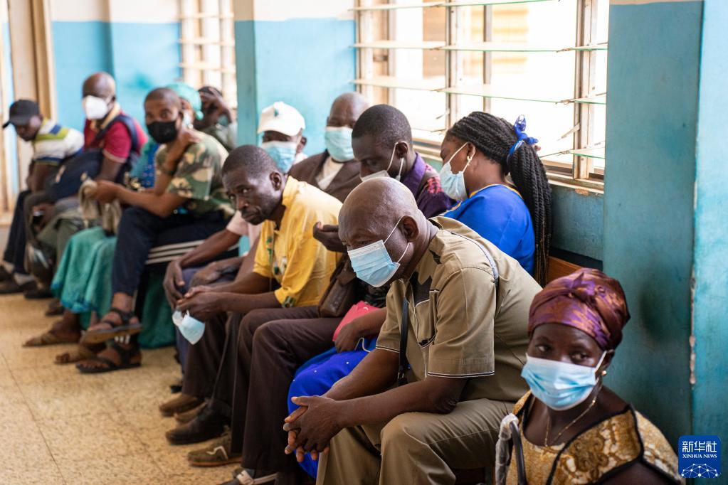 2月13日,人們在中非共和國首都班吉友誼醫(yī)院等待中國醫(yī)療隊(duì)醫(yī)生診療。