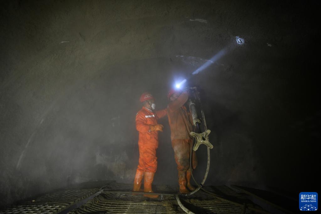 2月7日,施工人員在位于陜西省商洛市商州區的西氣東輸三線工程陜西段劉村隧道作業。
