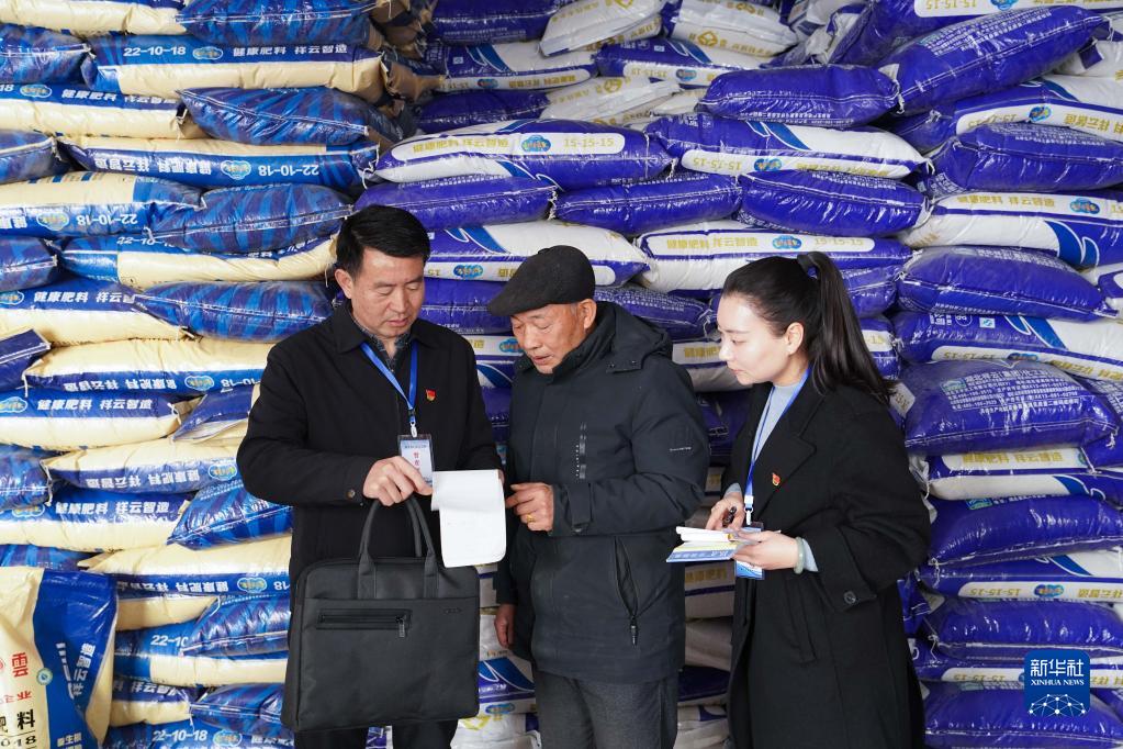 2月16日,江西靖安縣紀委監委督查人員在靖安縣仁首鎮一家農資店詢問春耕農資供給、職能部門履職等情況。