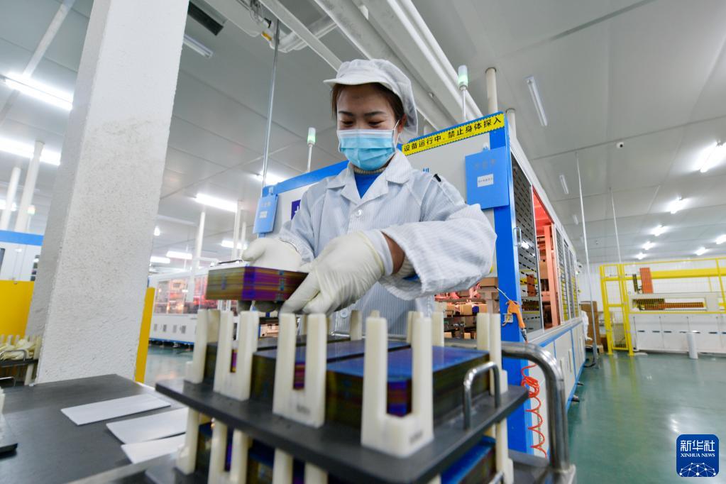2月16日,工人在古浪縣一家光伏組件生產企業的車間里作業。