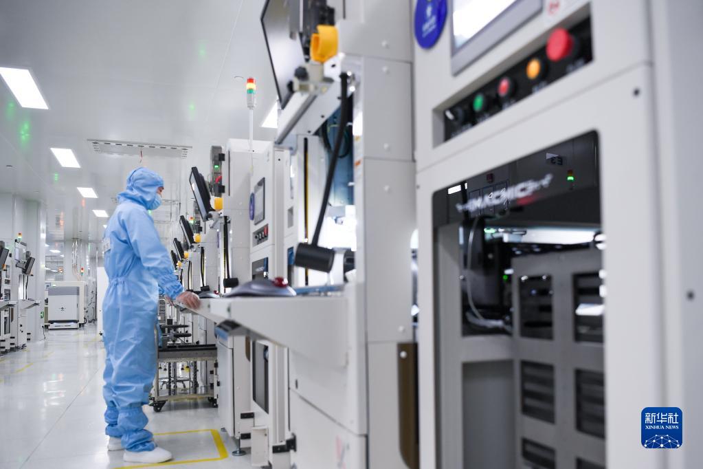 江蘇宏微科技股份有限公司工作人員在操作生產設備加工產品(2月15日攝)。該公司生產的電力半導體器件,廣泛應用于工業控制、家用電器、電動汽車、新能源領域。