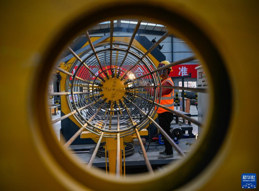 2月17日,在位于達(dá)州市境內(nèi)的中鐵四局西渝高鐵鋼筋加工廠,工人在焊接鋼筋籠。