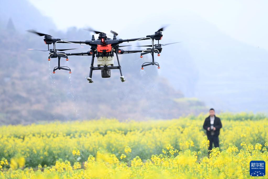 早春時節,貴州省六盤水市六枝特區木崗鎮16000余畝油菜花競相綻放。當地村民積極整地、育苗,并利用植保無人機進行春管,一派繁忙景象。
